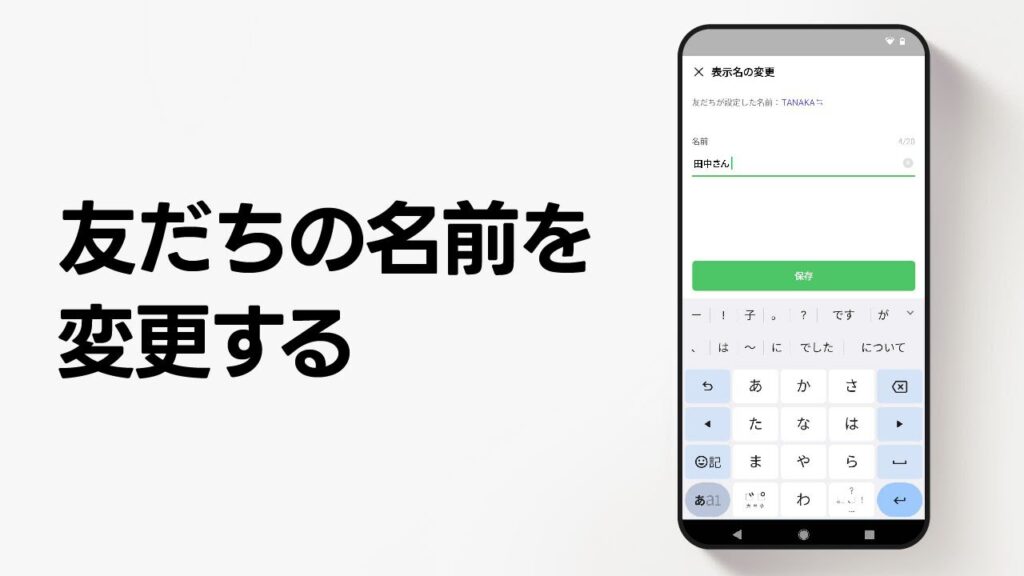 | 4. 名前を変更 | 名前の欄をタップして新しい名前を入力します。 |